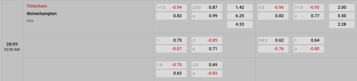 Soi kèo Tottenham vs Wolves qua tỷ lệ